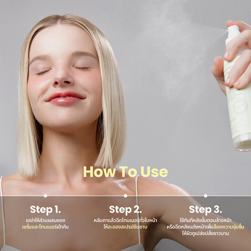 Toner spray with innovative Soft Mist Spray toner head that provides soft mist without clumping, gently soothing the skin, reducing dark spots and evens out skin tone, along with 8-Layer Hyaluronic Acid that deeply moisturizes the skin, giving it a beautiful, healthy glow.