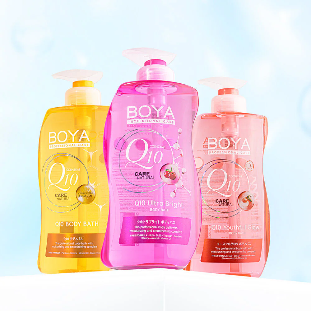 This concentrated shower gel, formulated for radiant skin with an aura, thoroughly cleanses the skin and deeply nourishes it with Coenzyme Q10, which helps reduce wrinkles and make skin look younger. It combines the value of 4 types of Mix Red Berry: sweet cherry, cranberry, strawberry, and goji berry, along with pomegranate extract, Niacinamide, and Collagen, which helps restore dull skin, reduce dark spots, and make it look bright and moisturized, giving you smooth, firm, radiant, and youthful-looking skin.
