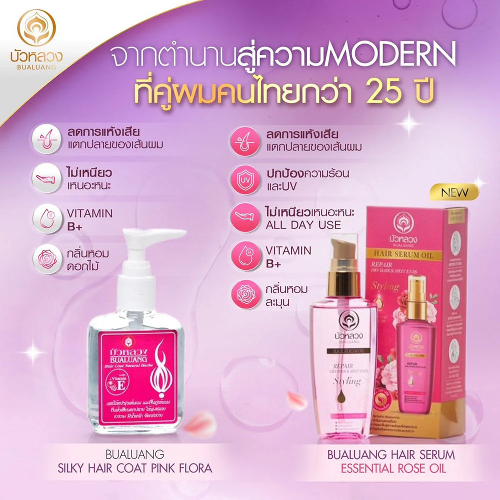 Bualuang Silky Natural Herbs Vitamin E+ Pink Flora Hair Serum 85ml