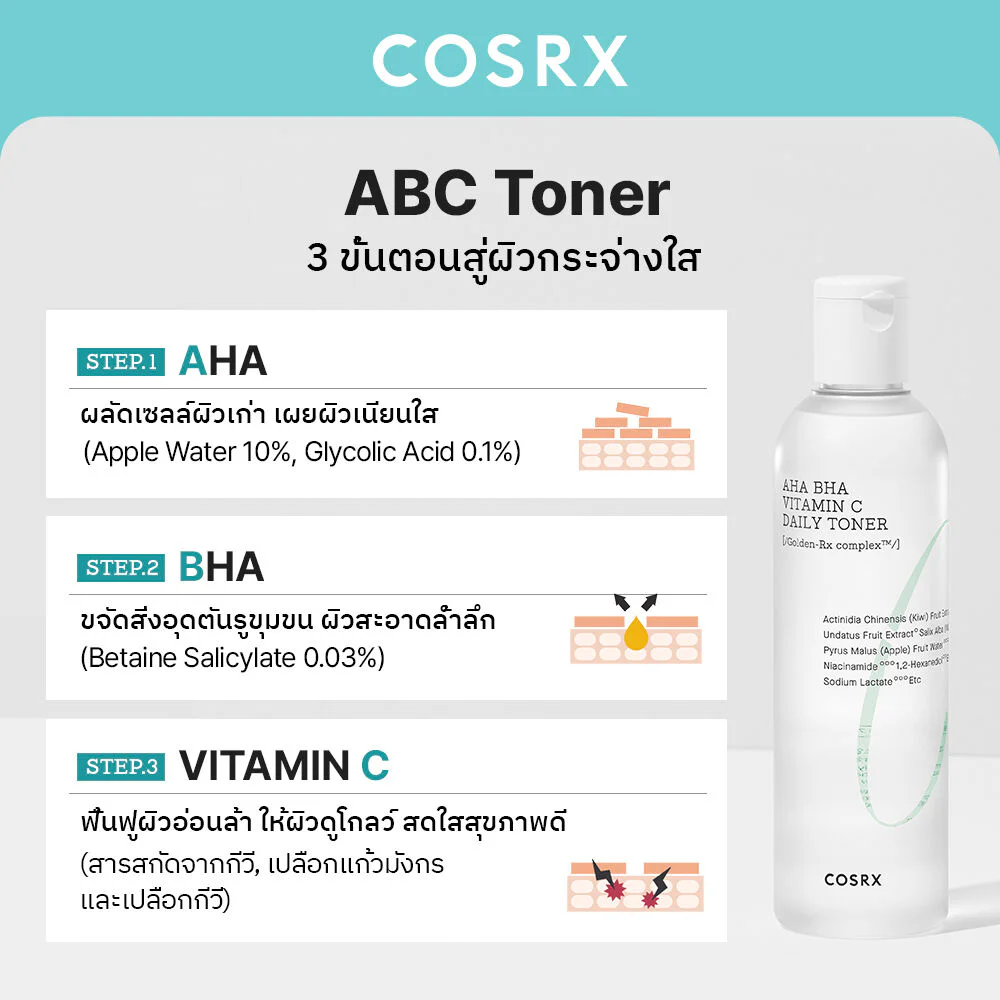 - Made with only 16 essential ingredients including AHA, BHA, Vitamin C and Niacinamide, it is also specially formulated with COSRX's patented Vitamin C, GOLDEN-RX COMPLEXª derived from Actinidia Chinensis (Kiwi) Fruit Extract and Hylocereus Undatus Fruit Extract.