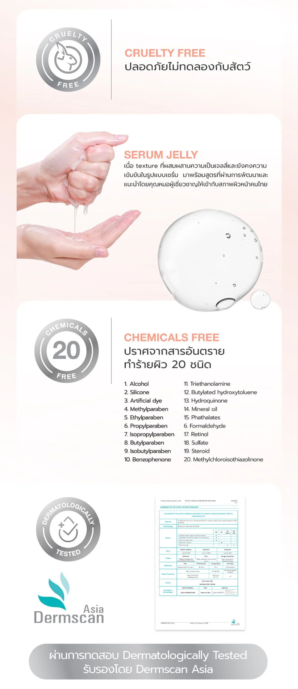- Free from fragrances and 20 types of skin-harming substances.