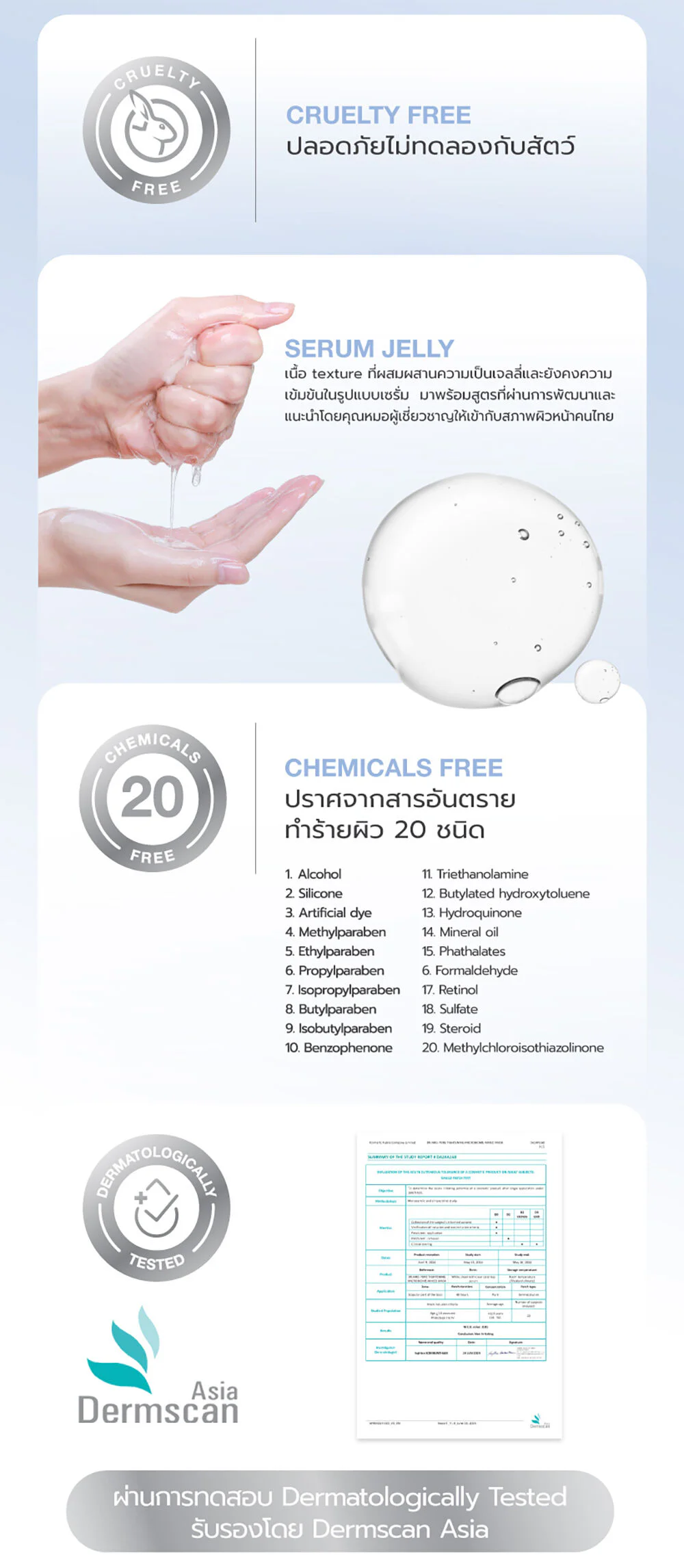 - Free from fragrances and 20 types of skin-harming substances