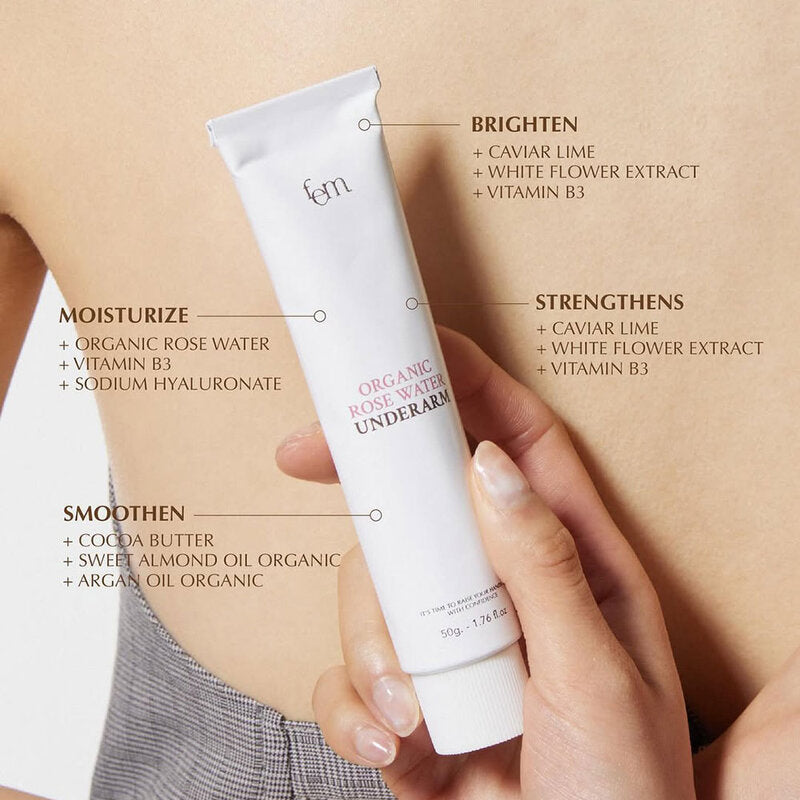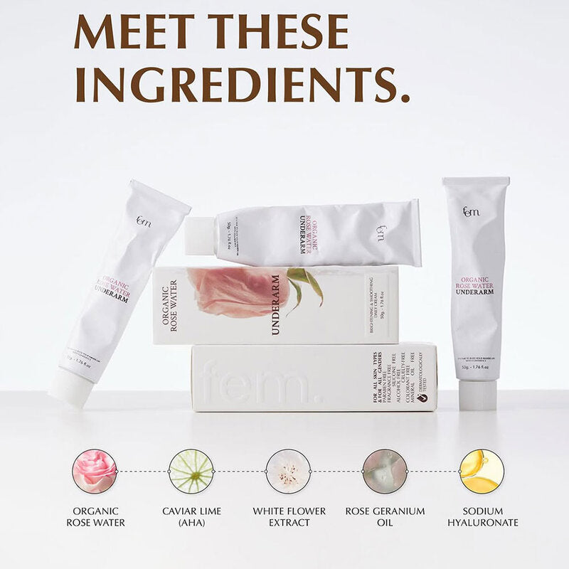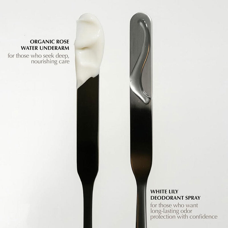 Underarm skin care cream with a light texture, easily absorbed, enriched with Organic Rose Water and natural extracts, helps to keep skin soft and moisturized. Gently exfoliates skin cells Reduces dullness, reveals naturally radiant skin, and deeply nourishes with vitamins and organic oils. It also has a gentle scent from lavender and rose geranium extracts, leaving underarm skin looking smooth and refreshed all day long.