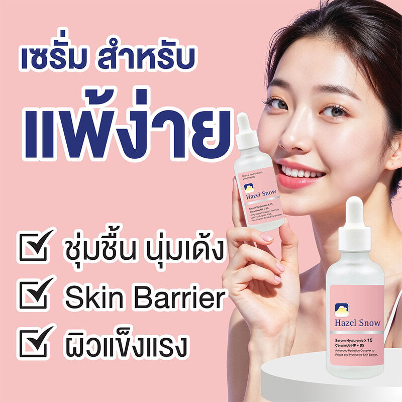 This gentle facial serum is formulated for sensitive and irritated skin. Its lightweight texture combines Hyaluronic Acid x15, Ceramide NP, and Vitamin B5 to help maintain long-lasting moisture, smooth skin, and strengthen the skin's protective barrier. It also contains extracts from Snow Lotus and Hazelnut Oil to soothe and moisturize the skin, leaving it soft, smooth, and healthy-looking.