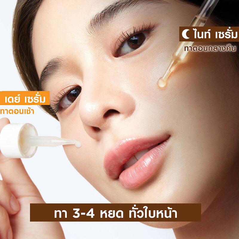 Night serum formula for the first time with 10% pure vitamin C with the highest concentration and efficiency for night time. You will wake up with skin that looks bright, soft, moisturized, and bouncy. The serum texture deeply nourishes the skin. Feels comfortable on the skin, light, absorbs quickly, and is not sticky.