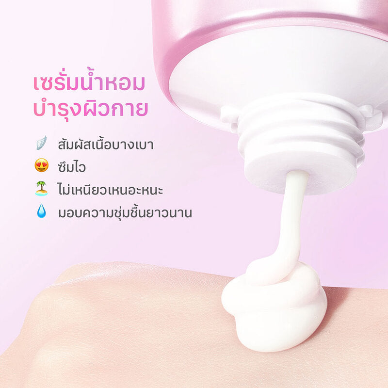 This perfumed body serum has a light texture that absorbs quickly without feeling sticky. It provides long-lasting moisture. Combined with niacinamide, vitamin B5, and vitamin E, it helps skin look smooth and soft, revealing a naturally radiant complexion. It is enhanced with a fruity scent of oranges and flowers, and ends with a delicate vanilla scent, providing a sweet, refreshing scent that lasts all day.