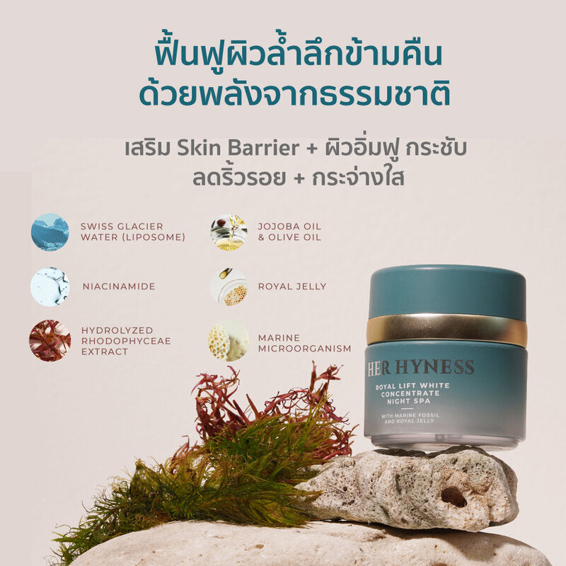 The first ever Sleeping Mask Royal Jelly and marine fossils (microorganisms from the sea 3,500 meters deep in a coolness of 1.5 degrees) to help make the skin firm, tight, and firm, increasing the brightness and radiance of the skin Ready to provide long-lasting moisture