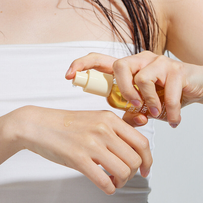 This oil-based hair serum has a light, non-sticky texture that absorbs quickly and helps restore dry, damaged hair to be soft, smooth, healthy, shiny, and tangle-free.