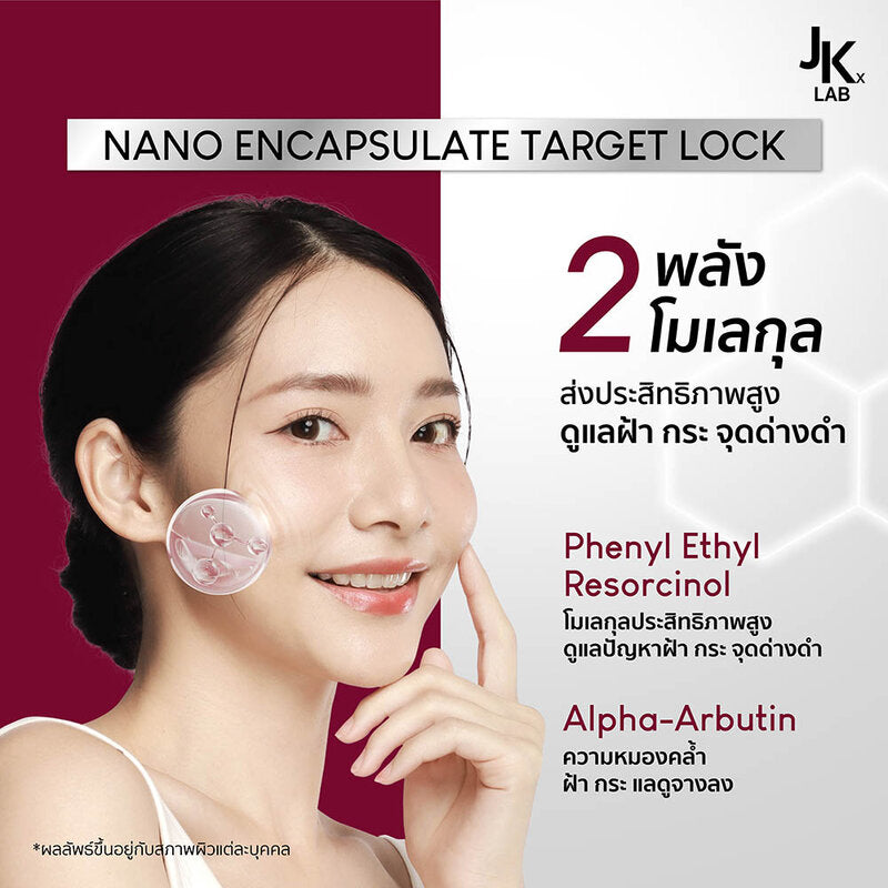 Take care of freckles, melasma and dark spots with 25 Melaclear Anti-Melasma, a concentrated serum with a specific formula consisting of 15 APL Hydroxy Complex (AHA, PHA, LHA) that gently exfoliates old skin without making the skin thin, revealing new skin that looks naturally bright and clear. Combined with 10 MelaStop (Niacinamide + Acetyl Glucosamine), it helps fade freckles, melasma and dark spots, restoring skin clarity and making it look more even than before. Combined with innovative Encapsulated substances such as PHE Resorcinol and Alpha-Arbutin, high-performance molecules. Helps restore clarity, take care of freckles, melasma and dark spots to fade away specifically. Combined with Allantoin and 5 types of Peptides, nourishes and moisturizes the skin. Helps soothe the skin.