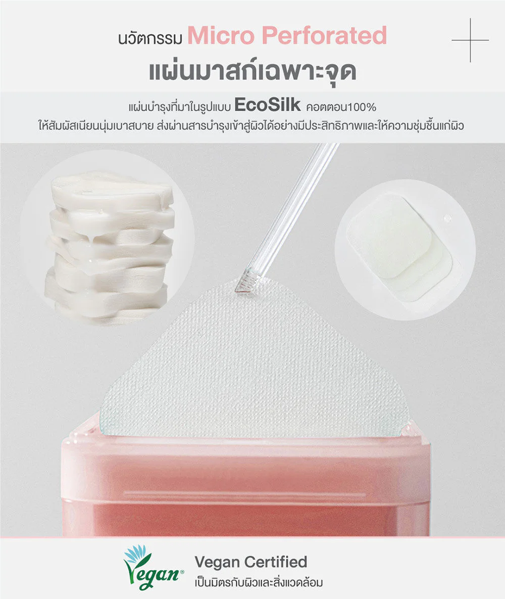 Spot-specific skin care sheet, firming formula for sagging skin with the efficiency of Microparticlized CollagenFactor consisting of Collagen, Ceramide, Milk Protein extracts developed with Liposome-based technology combined with 5 types of peptides, helps restore sagging skin, reduce deep wrinkles directly, reveal smooth, firm skin, look younger.
