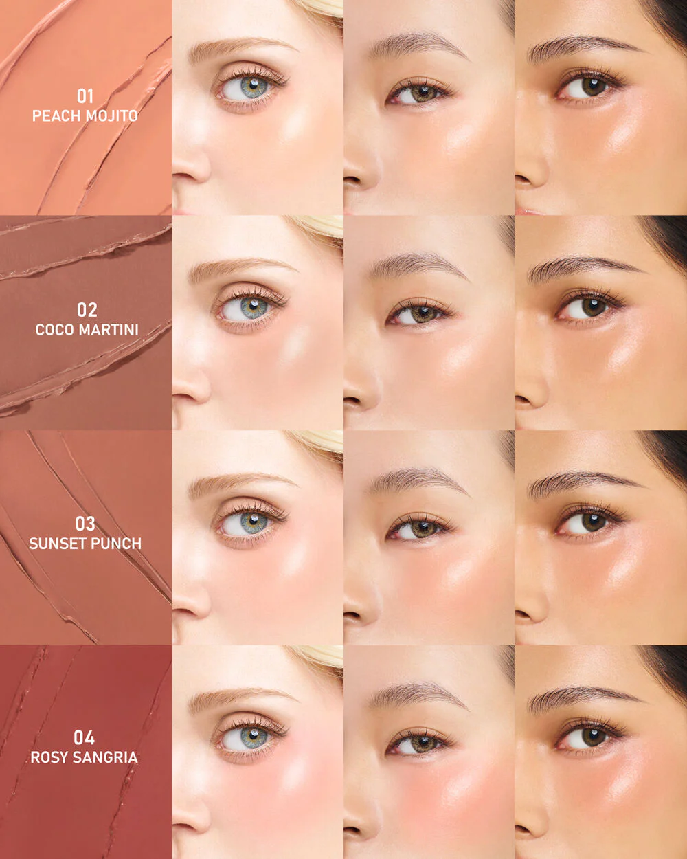 This sunscreen blush stick has a smooth, easy-to-blend texture that's non-sticky, giving your cheeks a dewy, glowing look. Enriched with Hya Filling Sphere, it provides vibrant, long-lasting color and is infused with four nourishing oils to leave your cheeks feeling soft, smooth, radiant, and healthy-looking. It also offers sun protection against UVA and UVB rays.