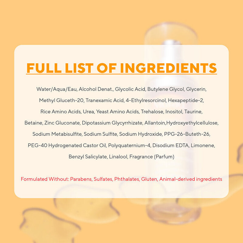 Facial serum combines the power of skin care with Resorcinol, Tranexamic Acid and Glycolic Acid to reduce dark spots and dullness with Dark Spot Correcting technology, along with exfoliating and gently restoring the skin, revealing smooth, radiant skin with even skin tone.