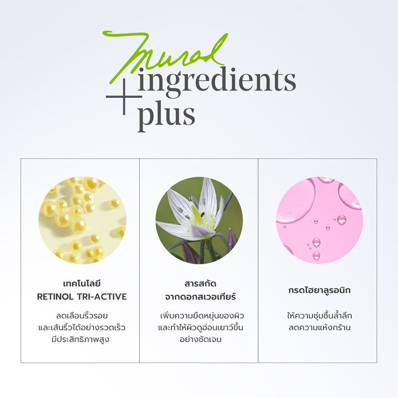 Facial serum with swettier flower extract helps reduce wrinkles, increase skin elasticity and even out skin tone with Retinol Tri-Active technology and Hyaluronic Acid to moisturize the skin, revealing youthful and radiant skin.