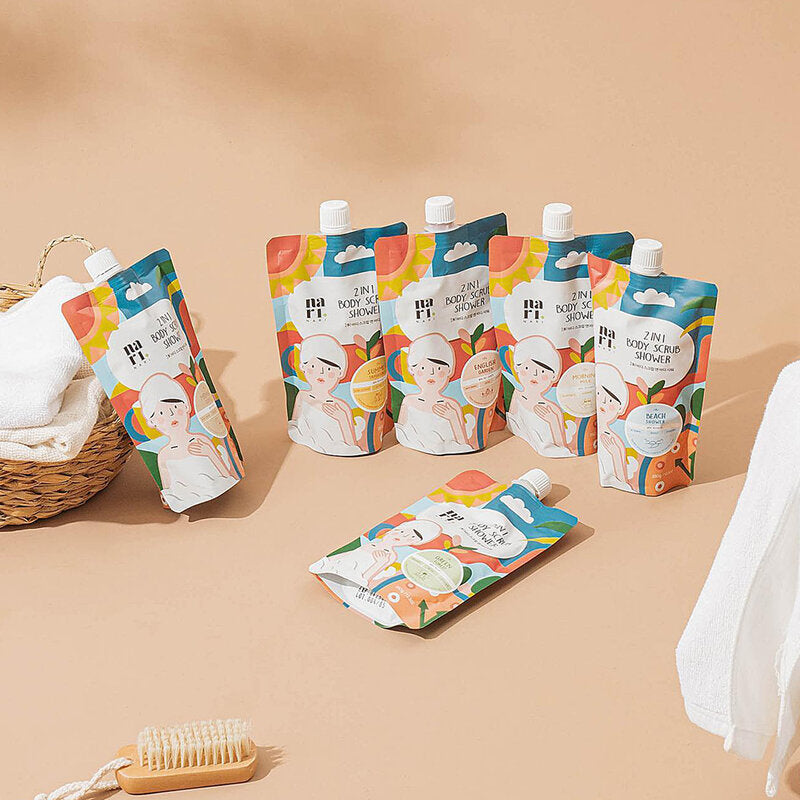 Nari 2-in-1 Body Scrub Shower is both a scrub and a shower soap, all in one Refresh formula, finely ground sea salt scrub with grape scrub beads, adds collagen to the skin, smoothes and firms the skin The Beach Shower scent gives a clean, sporty, stylish scent that makes you feel refreshed and active all the time. It is suitable for a sporty or outgoing lifestyle. It can effectively remove dead skin cells and deeply cleanse with a marshmallow scrub texture that gives a soft, light feeling that does not irritate the skin. You can use it as often as you want. It is suitable for all skin types, even sensitive skin. It moisturizes after use and does not make the skin tight and dry.