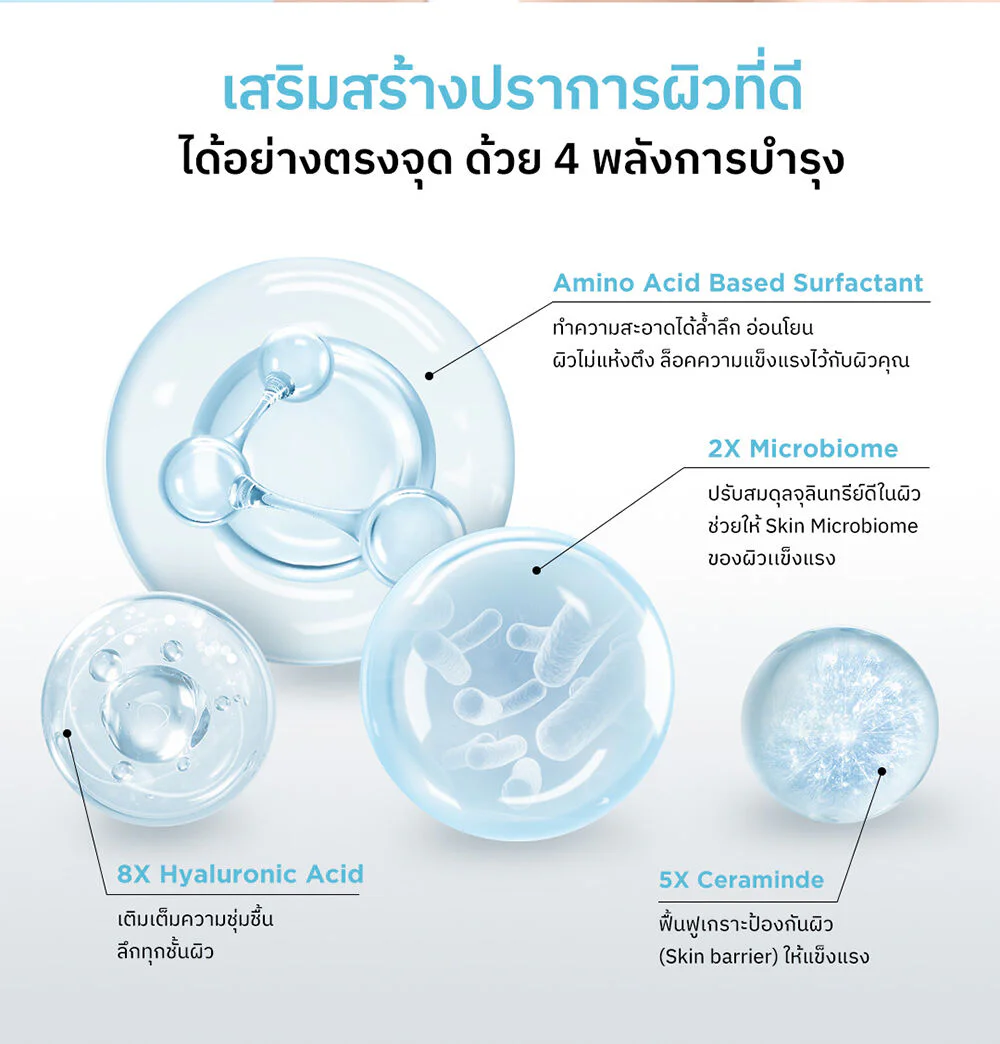 A gentle cleanser formulated with Amino-Acid Based Surfactant that deeply and gently cleanses the skin without leaving it feeling dry or tight. Combined with 8X Hyaluronic to help replenish moisture to the skin, along with 2X Microbiome and 5X Ceramide to help balance the skin and strengthen the skin's barrier, giving you clean, healthy-looking skin.