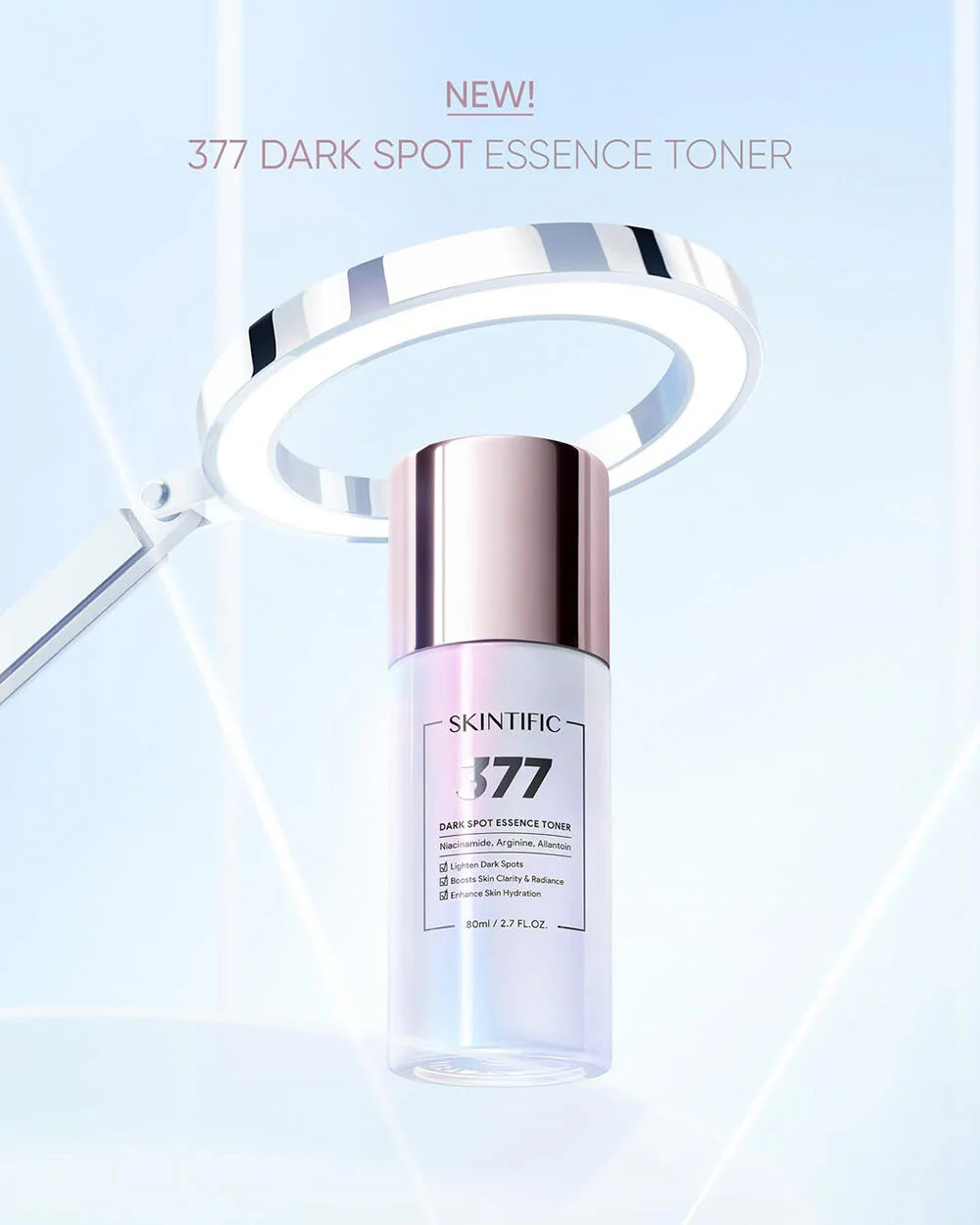 Toner formula 377 is light and absorbs quickly, not sticky. With 377 Pro Optical Scattering Technology and natural nutrients, it helps reduce dark spots, revealing brighter skin. Suitable for all skin types.