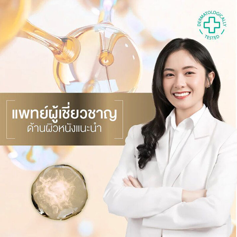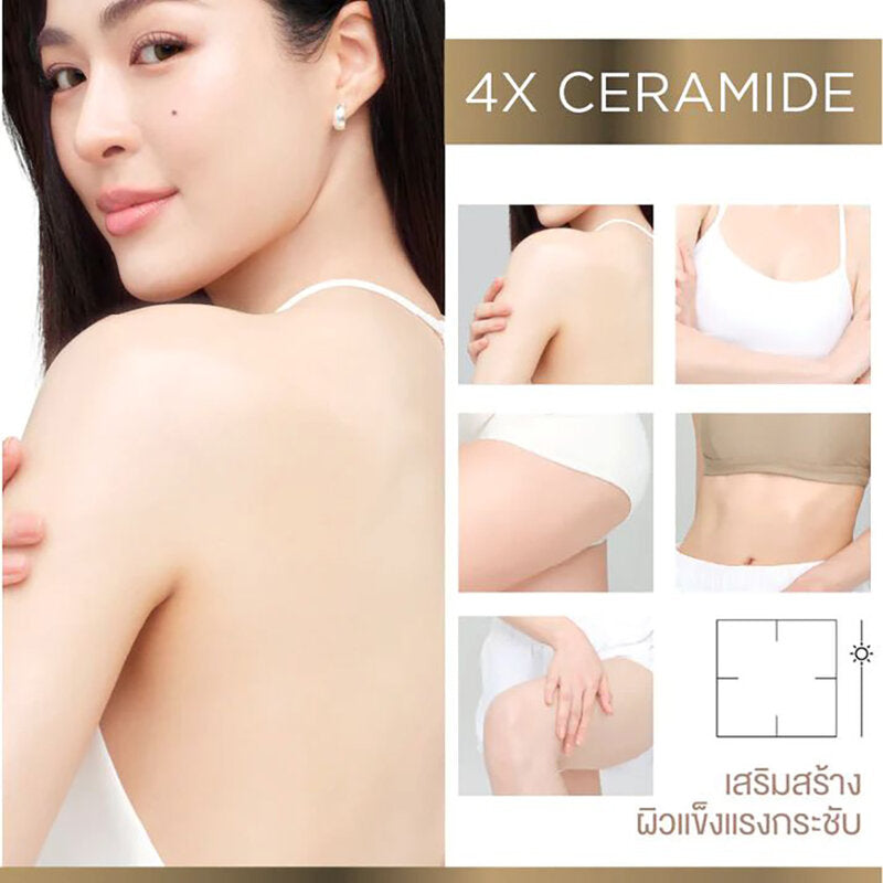Body serum formula for sagging skin, enriched with 5% Co-Q10 and 5% Caffeine & and Carnitine Encapsulation, helps take care of skin problems, reduces wrinkles, makes skin smooth and firm. Combined with 5% AHA Glycolic Acid and 3% Hydrolyzed Collagen, helps exfoliate skin cells, reduces dark spots, increases skin elasticity, along with 4X Ceramide and 13% Hyaluron, helps replenish and retain moisture and strengthens the skin's barrier, revealing smooth, firm, youthful and healthy skin.