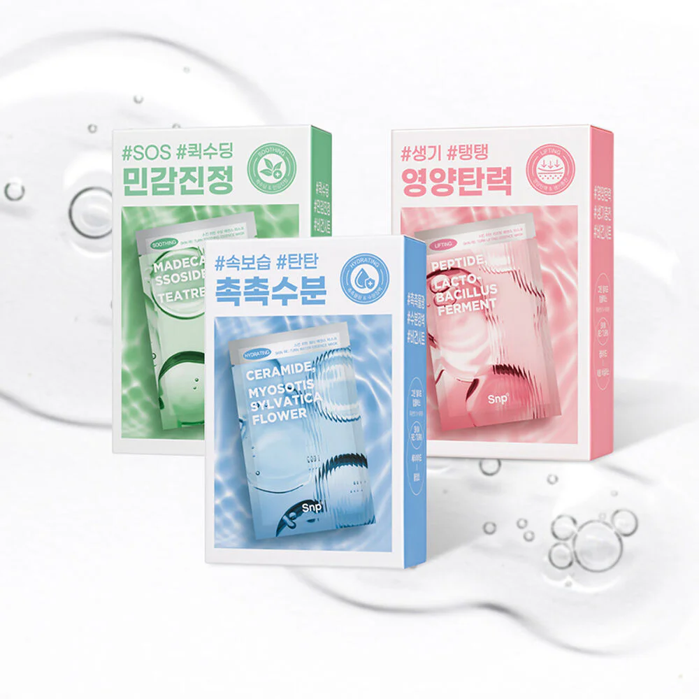 This nourishing facial mask sheet is a firming formula that absorbs quickly and is non-sticky. It is enriched with Green Relief Complex, a patented ingredient from SNP, combined with Peptides and Lactobacillus Ferment, which deeply moisturizes, maintains skin balance, soothes the skin, increases elasticity, and strengthens the skin's barrier, leaving it soft, smooth, and radiant.