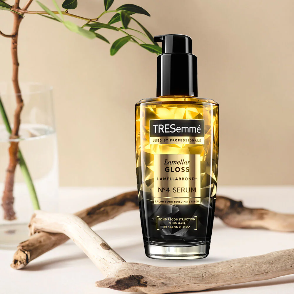 Lamellar Gloss Hair Serum combines with MicroSheet Lamellar, an exclusive technology from TRESemmé, deeply nourishes the hair shaft from the inside out, restoring dry, damaged, and coarse hair to be soft, smooth, shiny, and tangle-free, leaving hair in beautiful, light-reflective, healthy-looking, and as perfect as if you went to a salon.