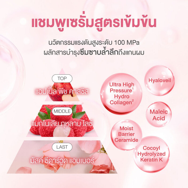 This refill shampoo tackles frizzy hair directly with cutting-edge technology inspired by skin serums, restoring hair to its straight, shiny, and vibrant state. It features Glitter Rose, a sweet blend of peach and apple with the refreshing scent of rose and magnolia, for a clean, fresh feel.