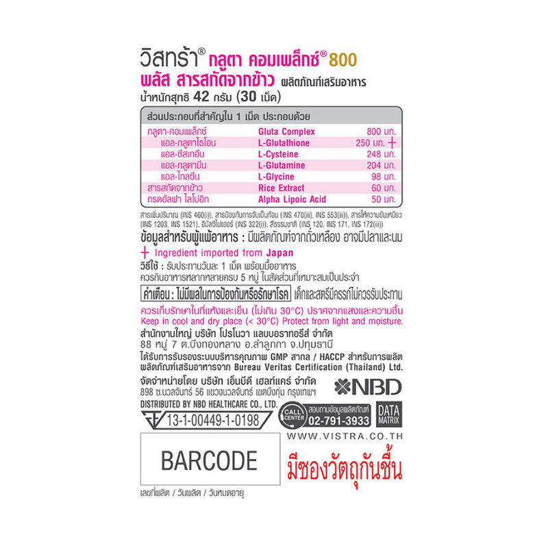 Vistra Gluta Complex 800 Plus Rice Extract 30 Tablets