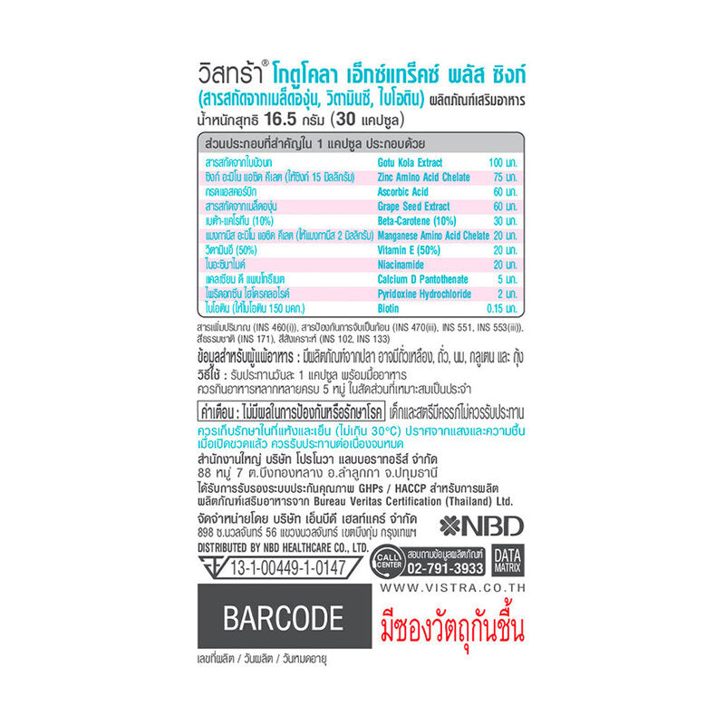 Vistra Gotu Kola Extract Plus Zinc 30 Capsules